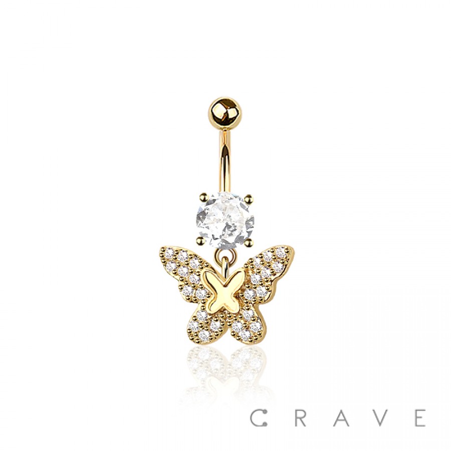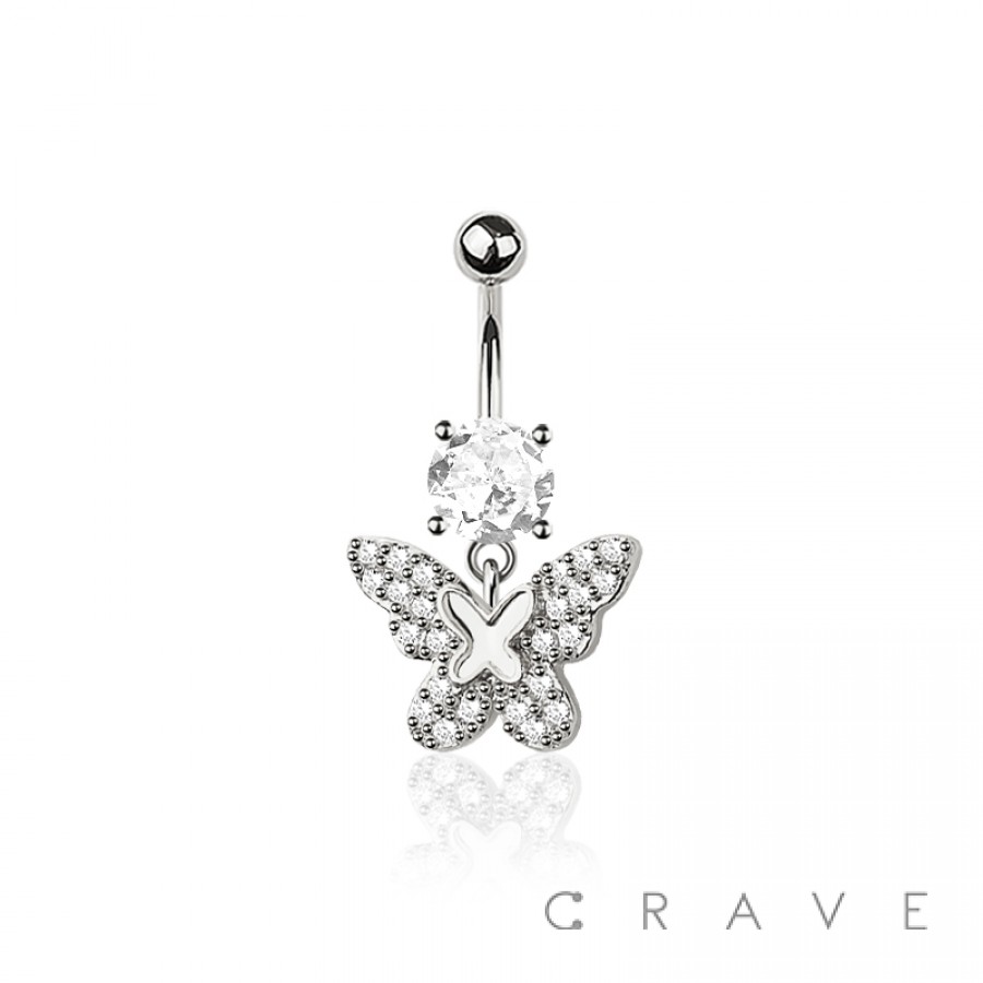 316L SURGICAL STEEL MULTI CZ DOUBLE BUTTERFLY BELLY BUTTON NAVEL RING