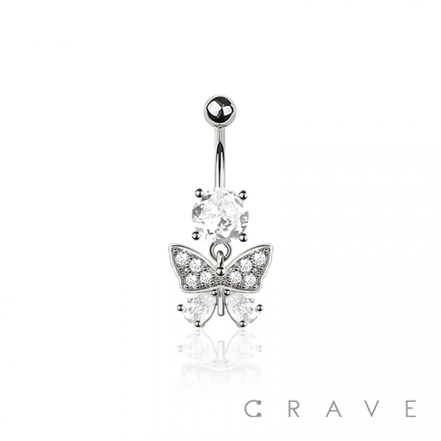 316L SURGICAL STEEL MULTI CZ BUTTERFLY BELLY BUTTON NAVEL RING