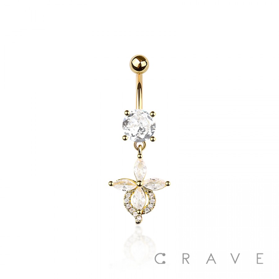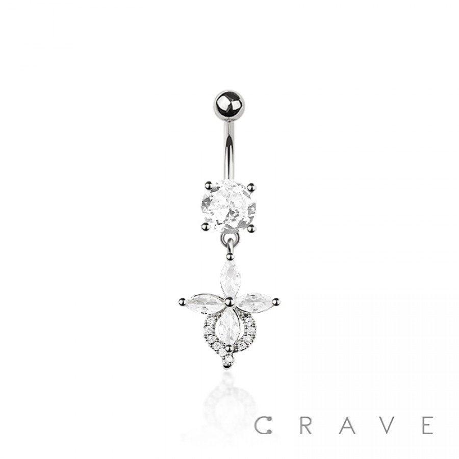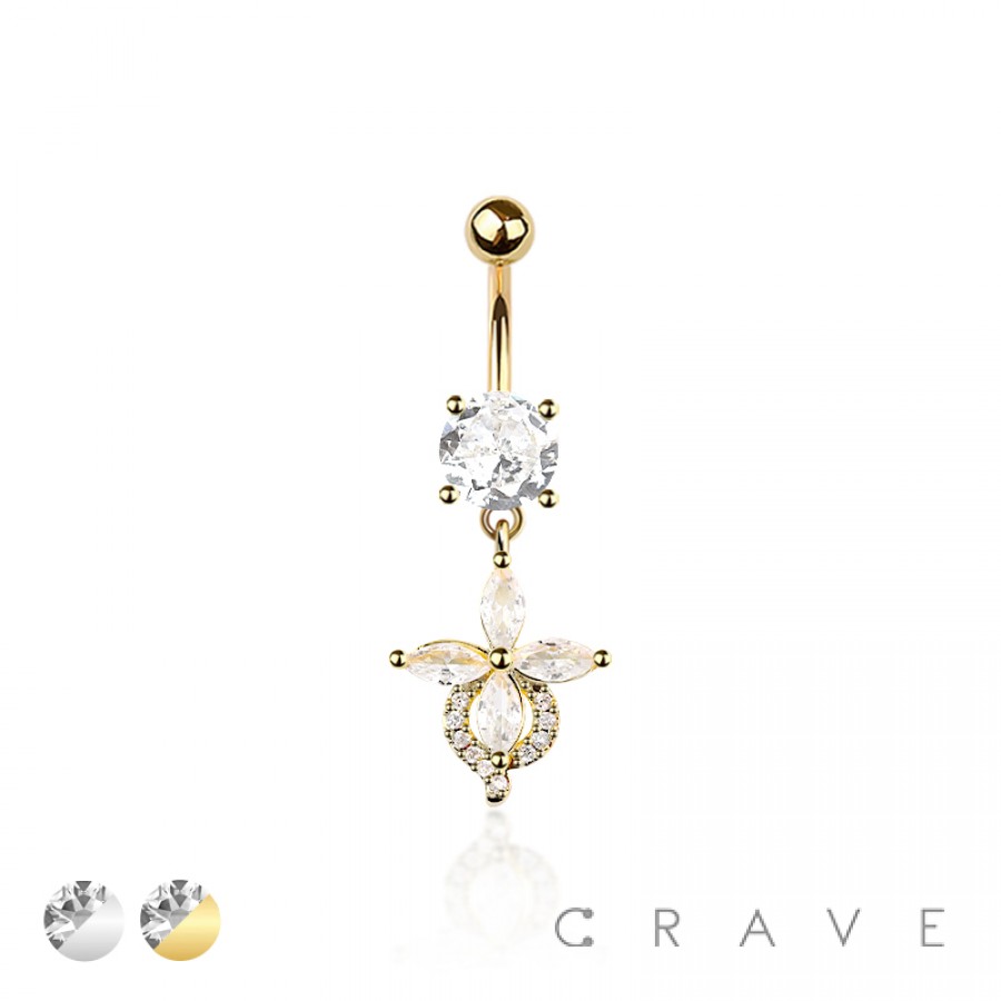 316L SURGICAL STEEL MULTI CZ LOTUS LILLY FLOWER BELLY BUTTON NAVEL RING