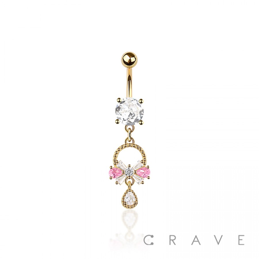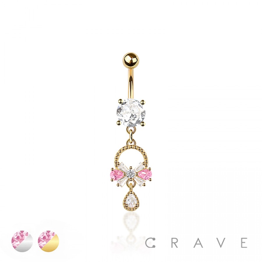 316L SURGICAL STEEL MULTI CZ BOW TIE GEMMED RIBBON BELLY BUTTON NAVEL RING