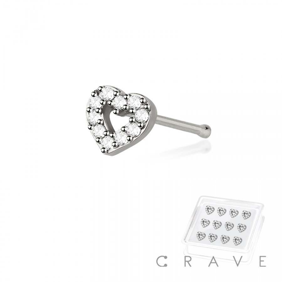 MULTI CZ HEART 316L SURGICAL STEEL NOSE BONE STUD BOX