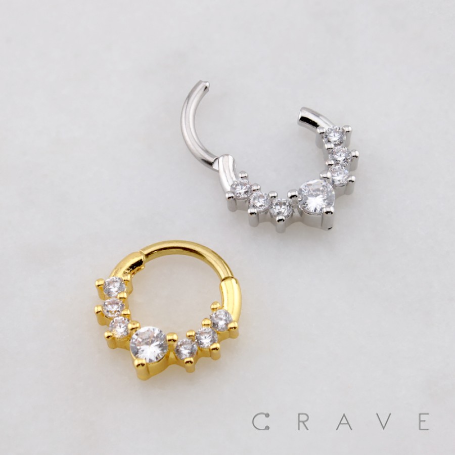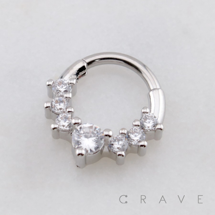 RADIANT MULTI CZ CLUSTER TIARA 316L SURGICAL STEEL SEPTUM HINGED SEGMENT RING