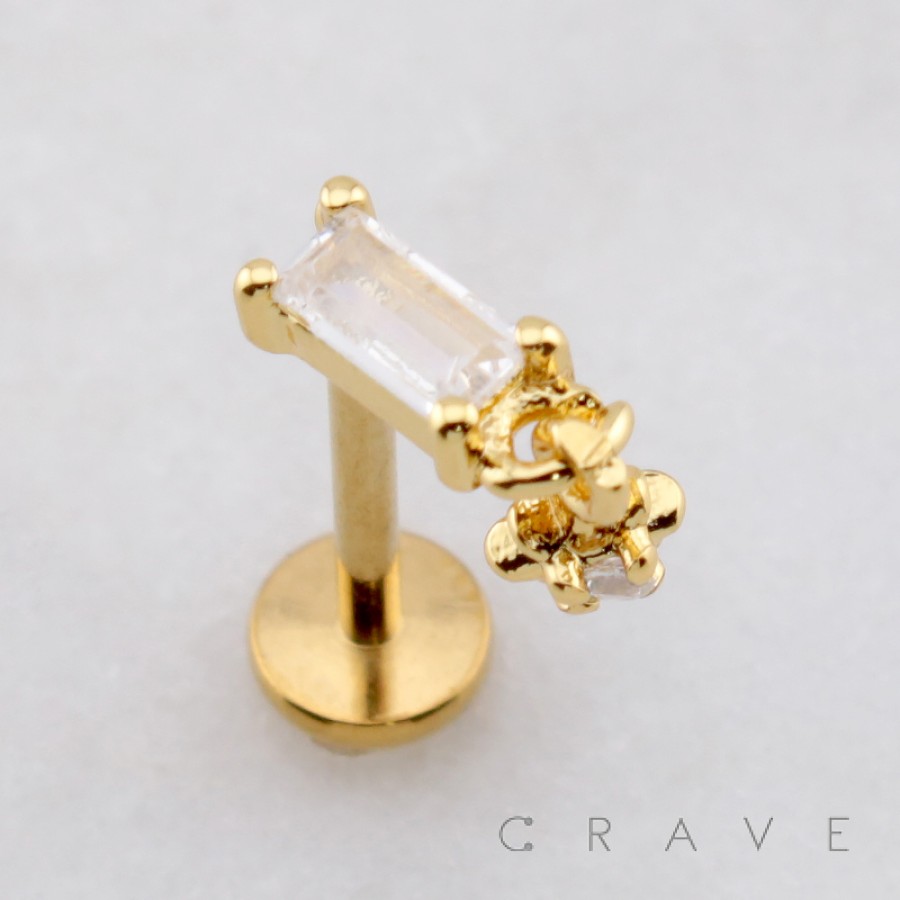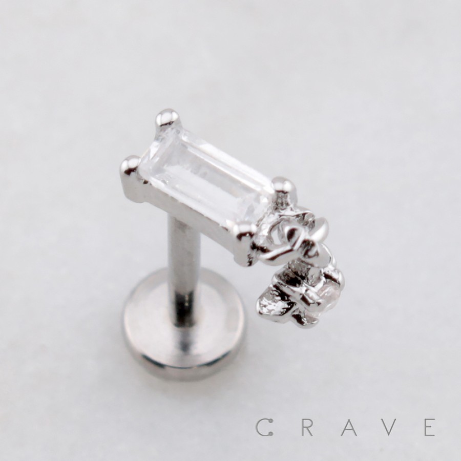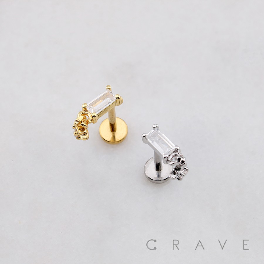 BAGUETTE CZ DANGLE STARBURST CZ THREADLESS (PUSH IN) 316L SURGICAL STEEL LABRET SET