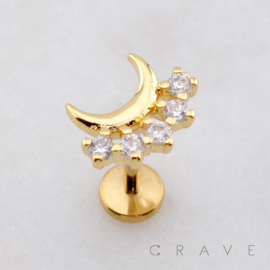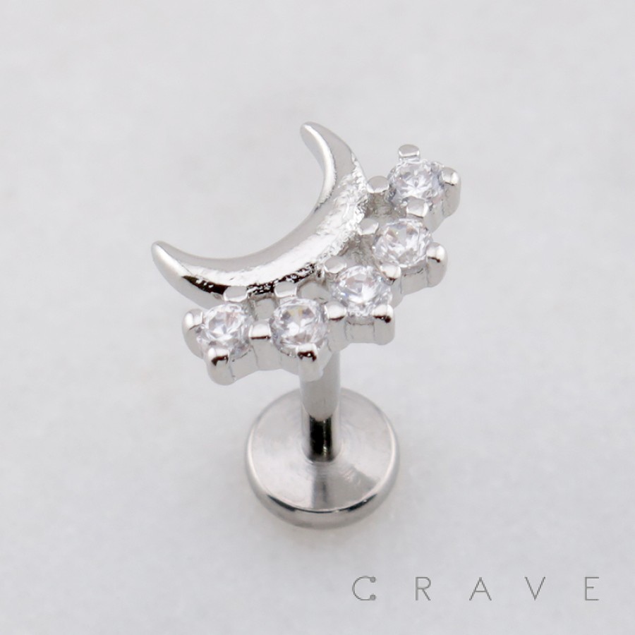 MOON CRESCENT MULTI CZ THREADLESS (PUSH IN) 316L SURGICAL STEEL LABRET SET
