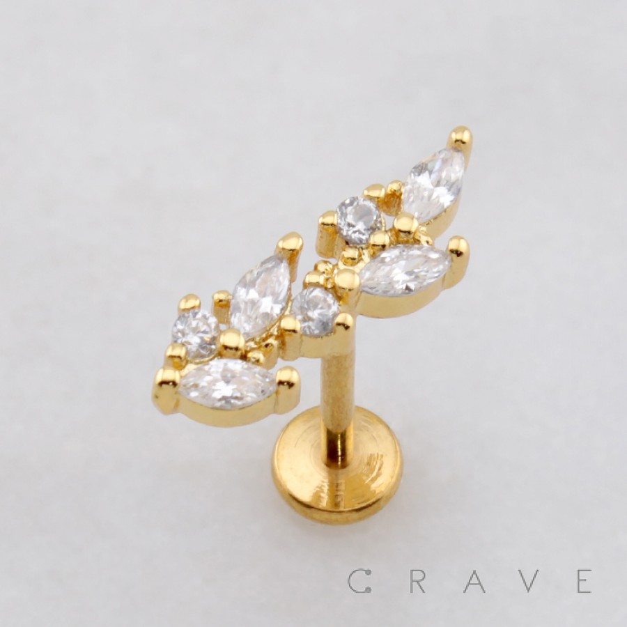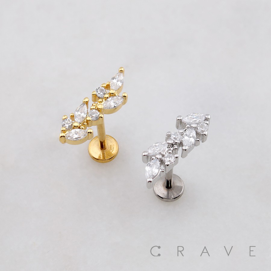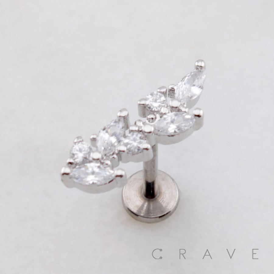MULTI MARQUISE BRANCH LEAVES LEAF THREADLESS (PUSH IN) 316L SURGICAL STEEL LABRET SET