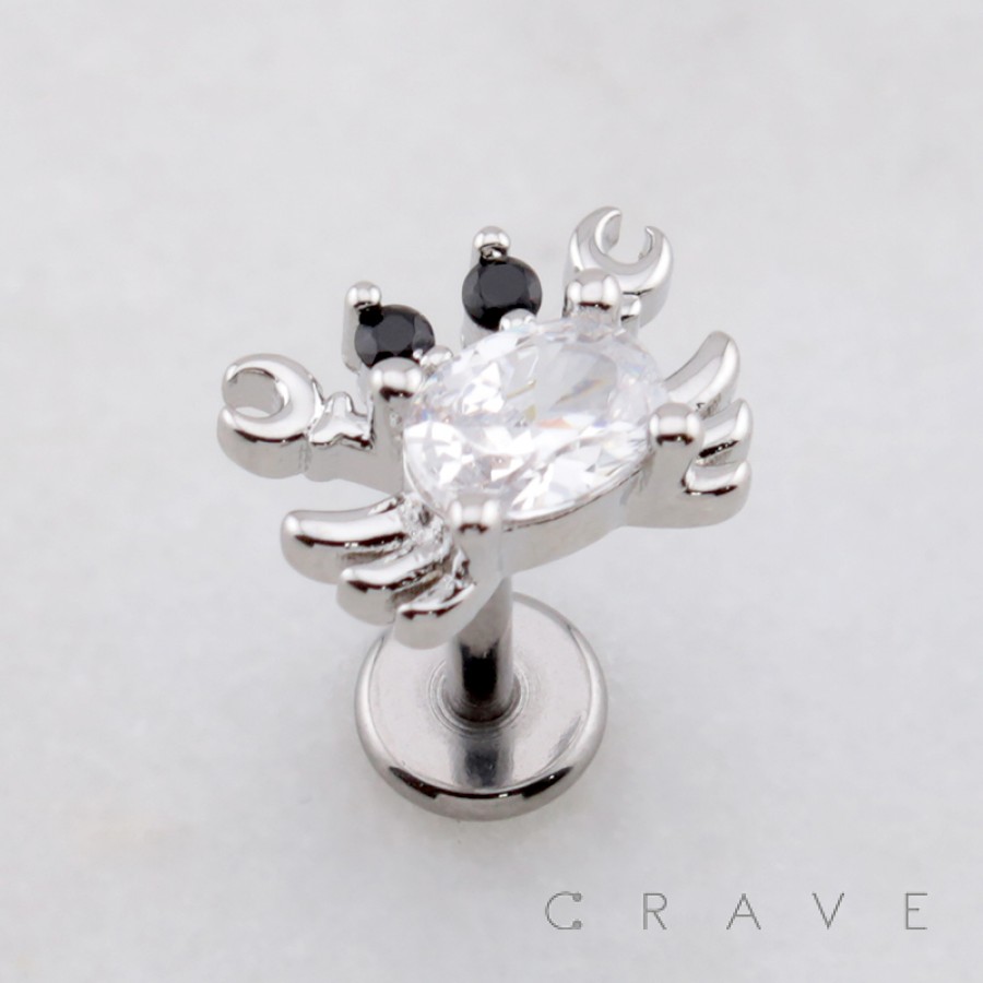 CRABBY CRAB CZ THREADLESS (PUSH IN) 316L SURGICAL STEEL LABRET SET