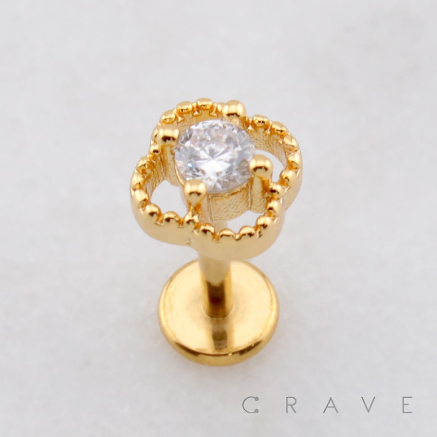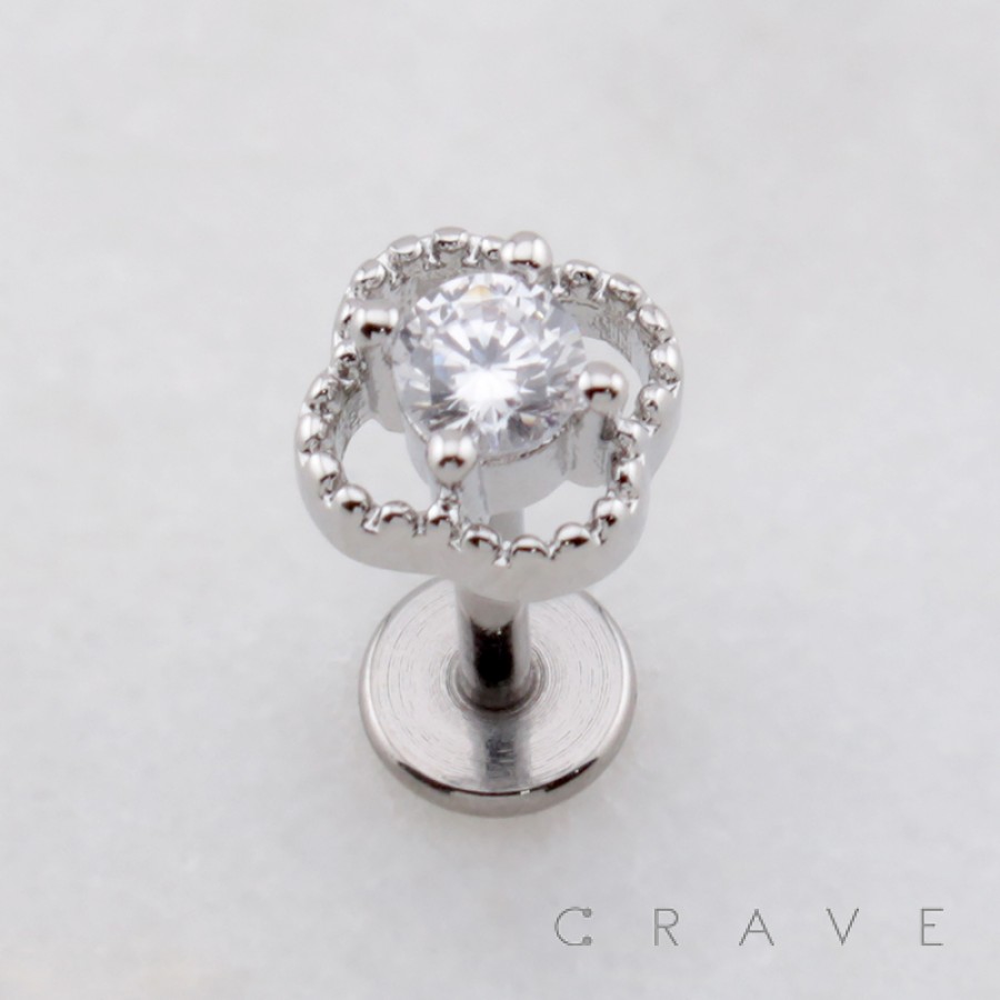 MULTI CZ CLOVER FLOWER THREADLESS (PUSH IN) 316L SURGICAL STEEL LABRET SET