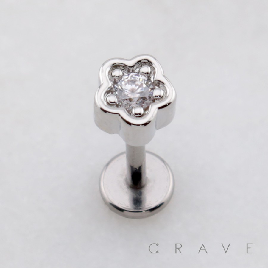 CZ STAR FLOWER THREADLESS (PUSH IN) 316L SURGICAL STEEL LABRET SET