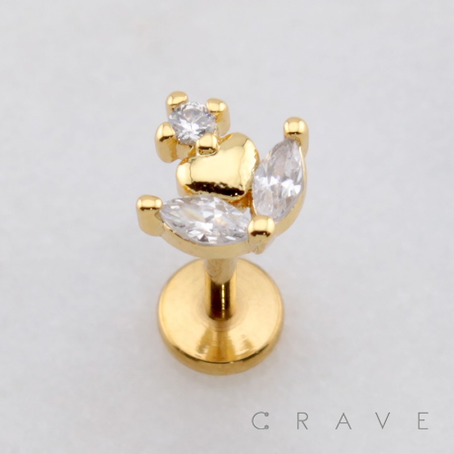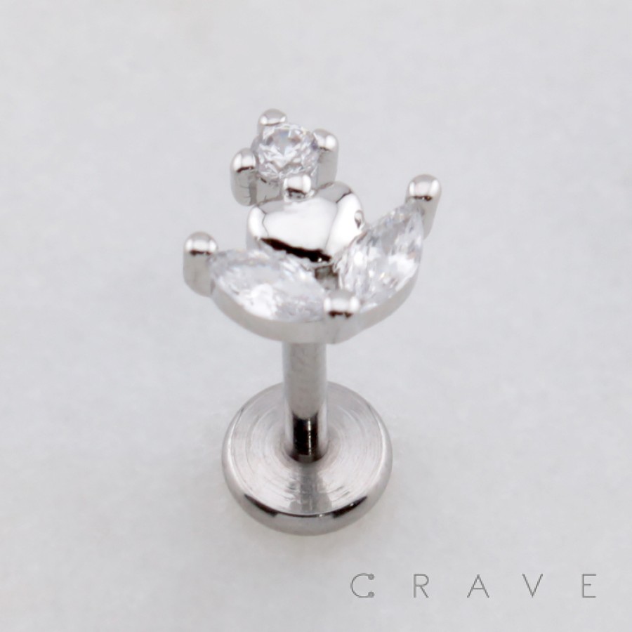 MARQUISE FLOWER HEART CUP CZ DANGLE THREADLESS (PUSH IN) 316L SURGICAL STEEL LABRET SET