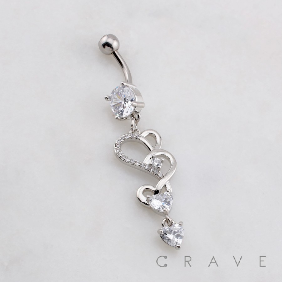 DANGLE HEART CASCADE MULTI CZ BELLY BUTTON NAVEL RING 316L SURGICAL STEEL