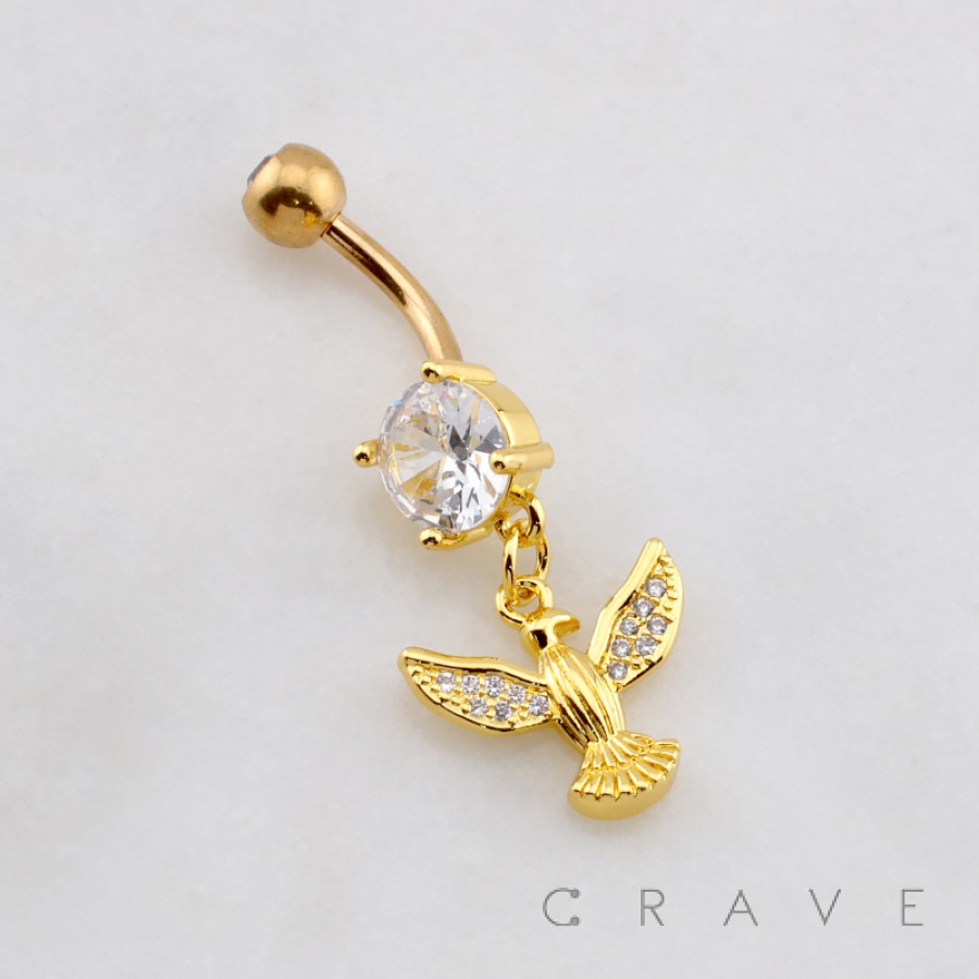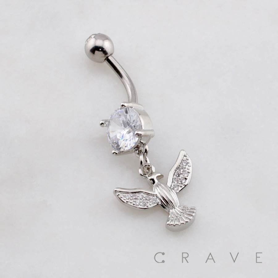 DANGLE DOVE SWALLOW SPARROW BIRD CHARM BELLY BUTTON NAVEL RING 316L SURGICAL STEEL