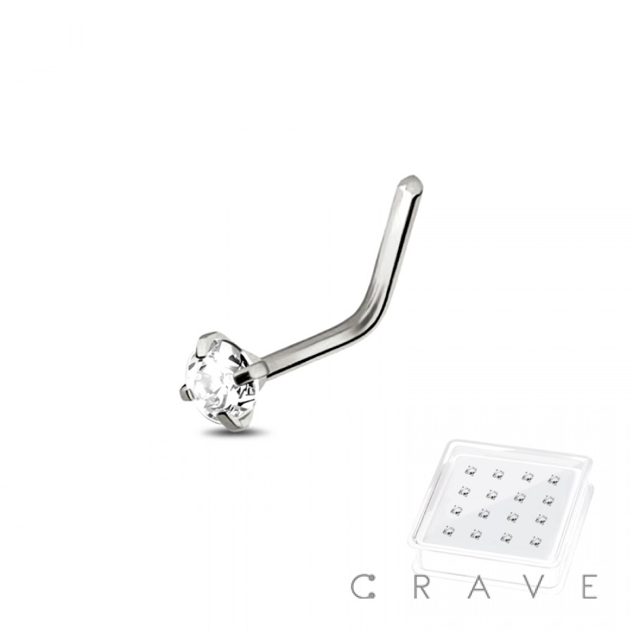 L SHAPE WITH GEM 925 STERLING SILVER CRYSTAL NOSE STUD PACKAGE