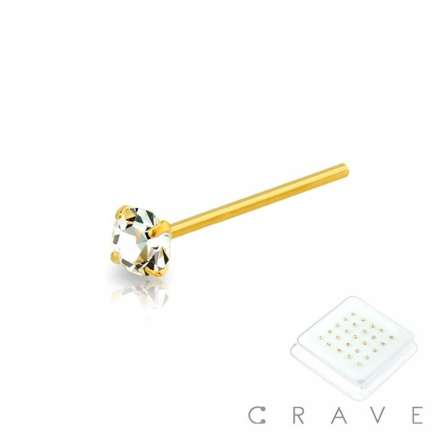 GOLD PLATED PRONG SET CZ 925 STERLING SILVER CLEAR NOSE PIN PACKAGE
