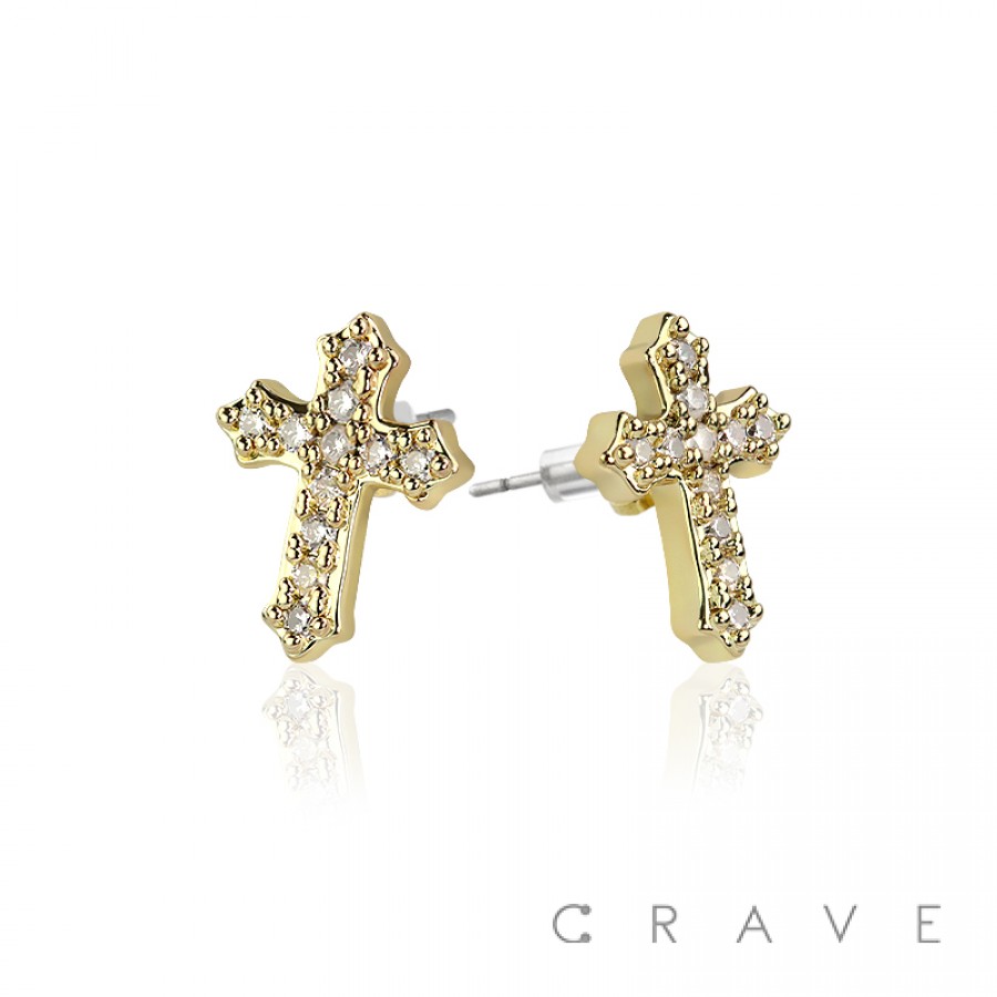 CROSS DESIGN PAIR OF MICROPAVED STAINLESS STEEL PIN EARRING