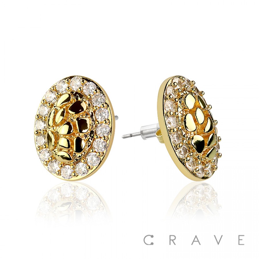 PAIR OF 18K GOLD PLATED MULTI CZ GEMS OVAL INGOT CENTERED NUGGET EARRINGS