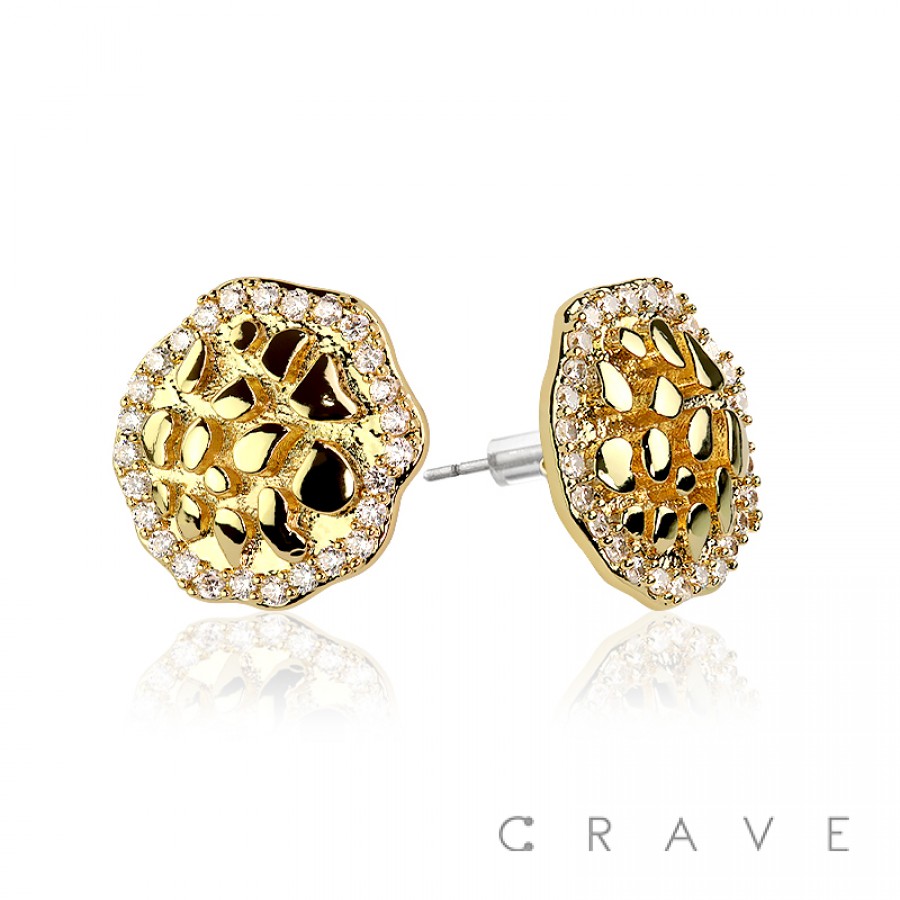 PAIR OF 18K GOLD PLATED INGOT CENTERED NUGGET EARRINGS