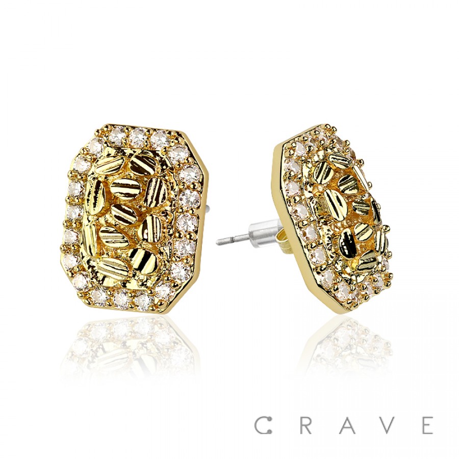 PAIR OF 18K GOLD PLATED INGOT CENTERED RECTANGULAR NUGGET EARRINGS