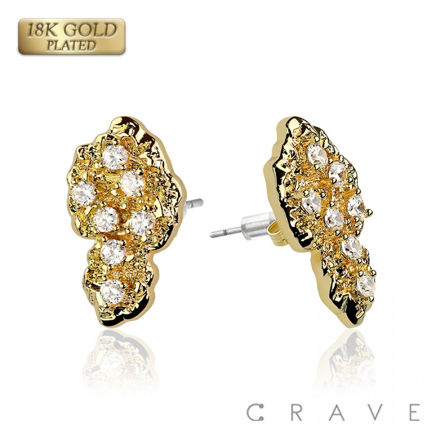 PAIR OF 18K GOLD PLATED INGOT CENTERED SHAPE NUGGET EARRINGS