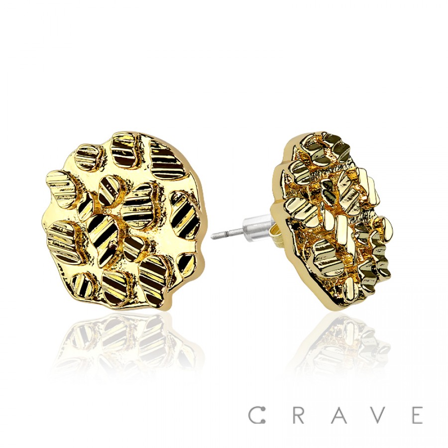 PAIR OF 18K GOLD PLATED INGOT CENTERED SHAPE NUGGET EARRINGS