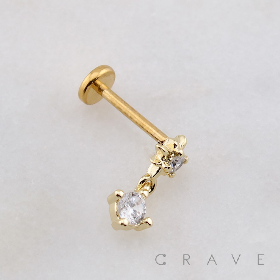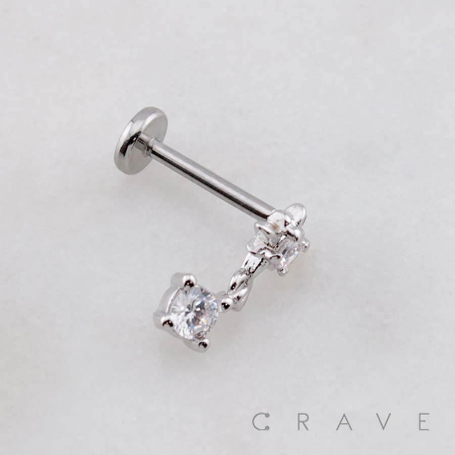 CZ STAR DROP ROUND DANGLE CZ THREADLESS (PUSH IN) 316L SURGICAL STEEL LABRET SET