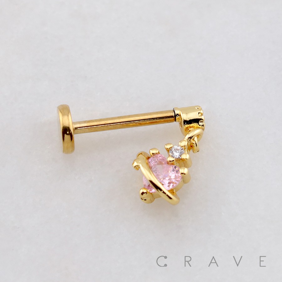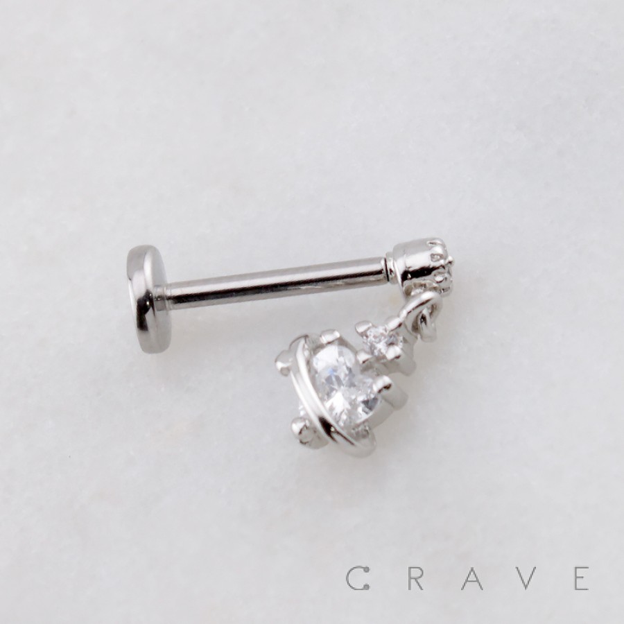 CZ HEART PLANET DANGLE THREADLESS (PUSH IN) 316L SURGICAL STEEL LABRET SET