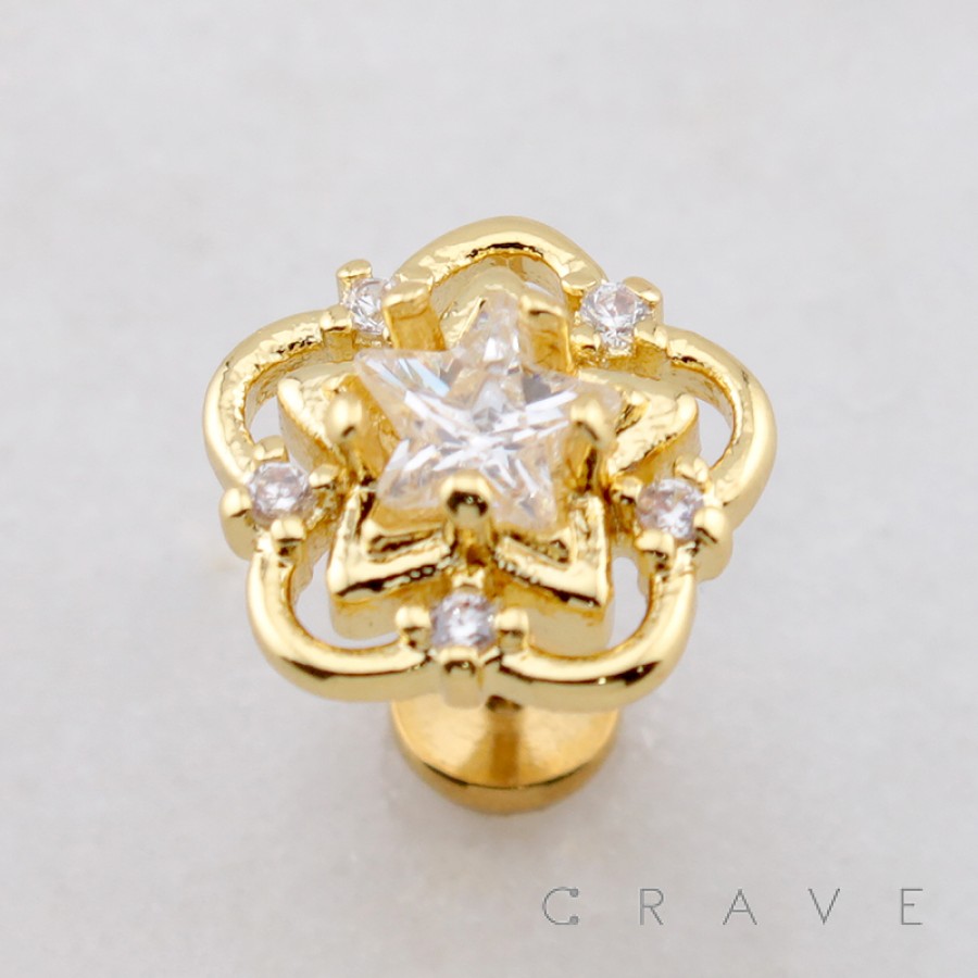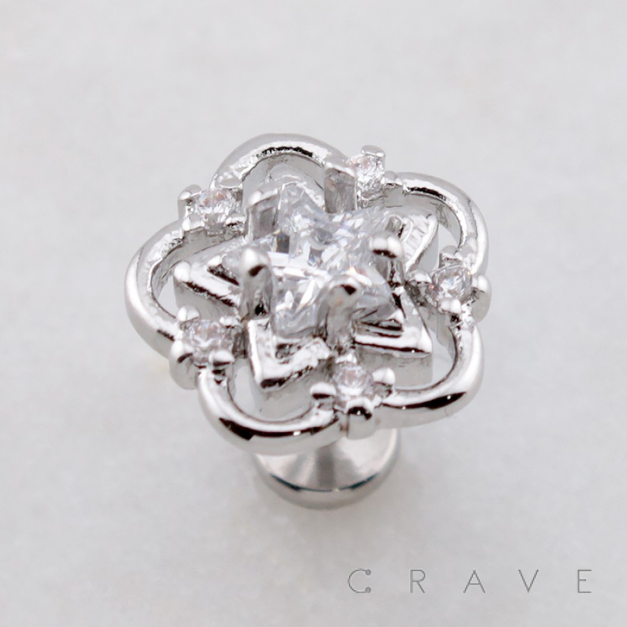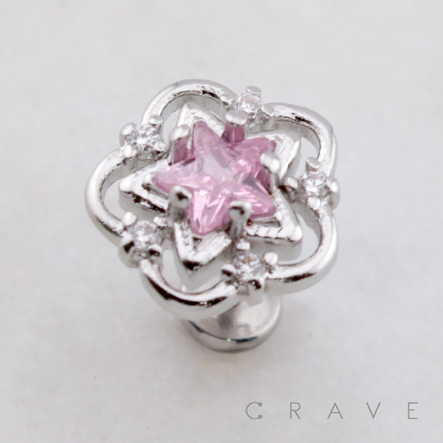 MULTI CZ FLOWER GLOW STAR THREADLESS (PUSH IN) 316L SURGICAL STEEL LABRET SET