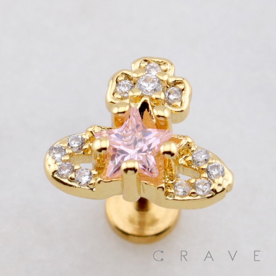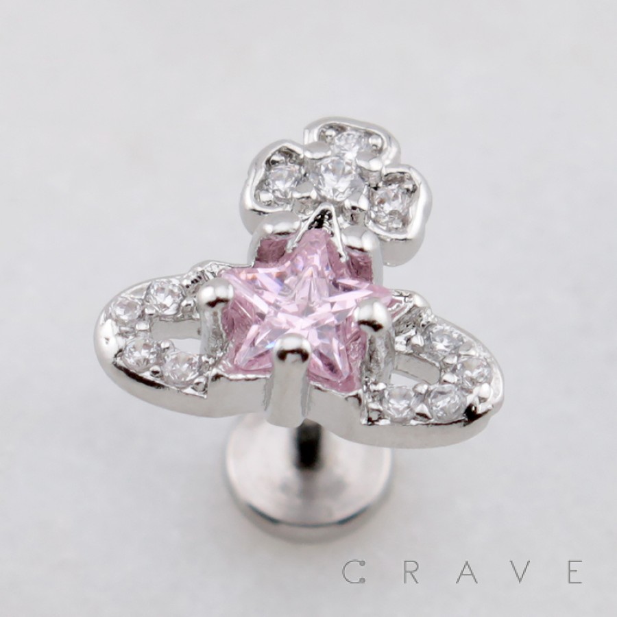 CZ CLOVER STAR GLAMOUR THREADLESS (PUSH IN) 316L SURGICAL STEEL LABRET SET