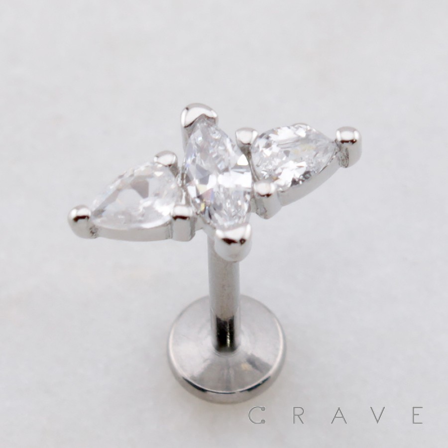 MARQUISE PEAR CZ TIARA THREADLESS (PUSH IN) 316L SURGICAL STEEL LABRET SET