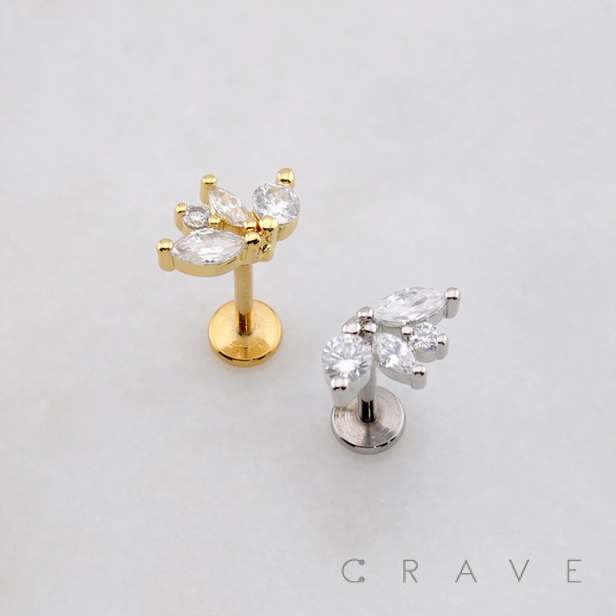 MULTI CZ ROUND MARQUISE FAN ARCH LINE THREADLESS (PUSH IN) 316L SURGICAL STEEL LABRET SET