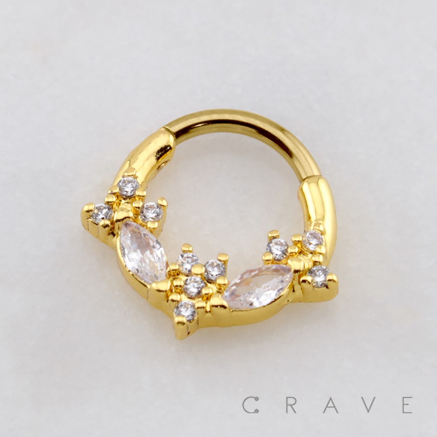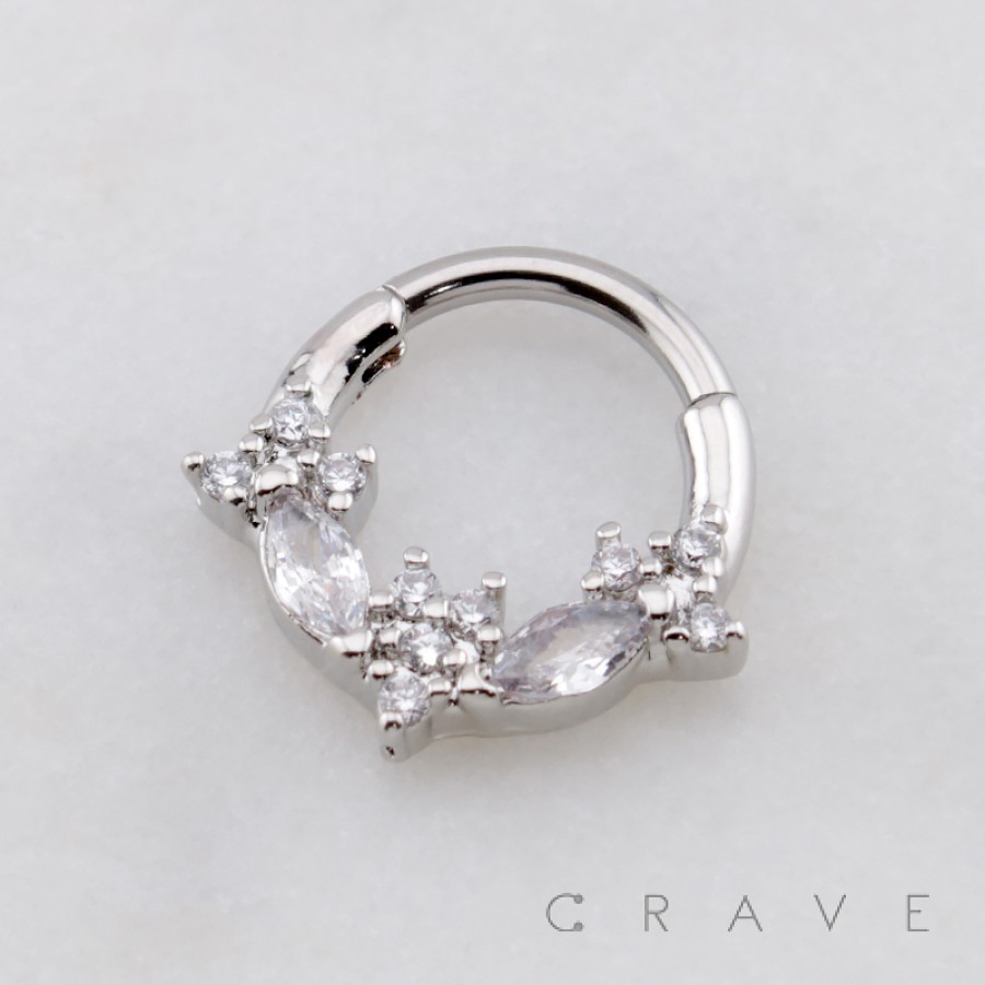 MULTI CZ MARQUISE FLORAL STAR 316L SURGICAL STEEL SEPTUM HINGED SEGMENT RING