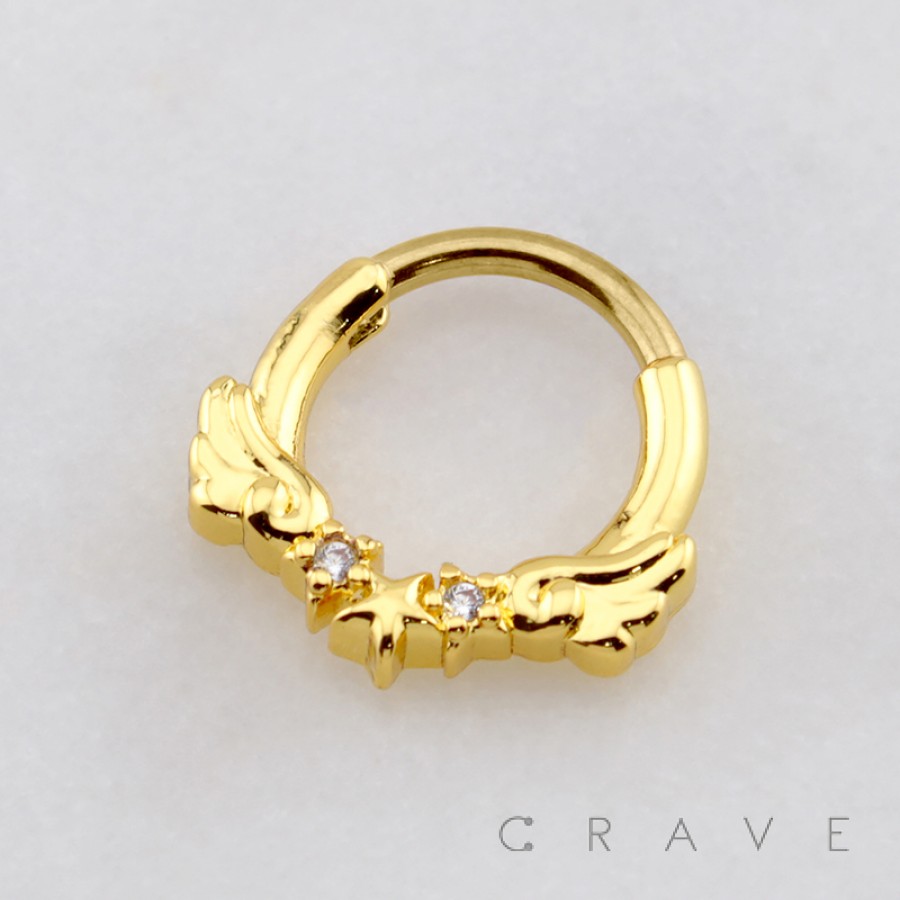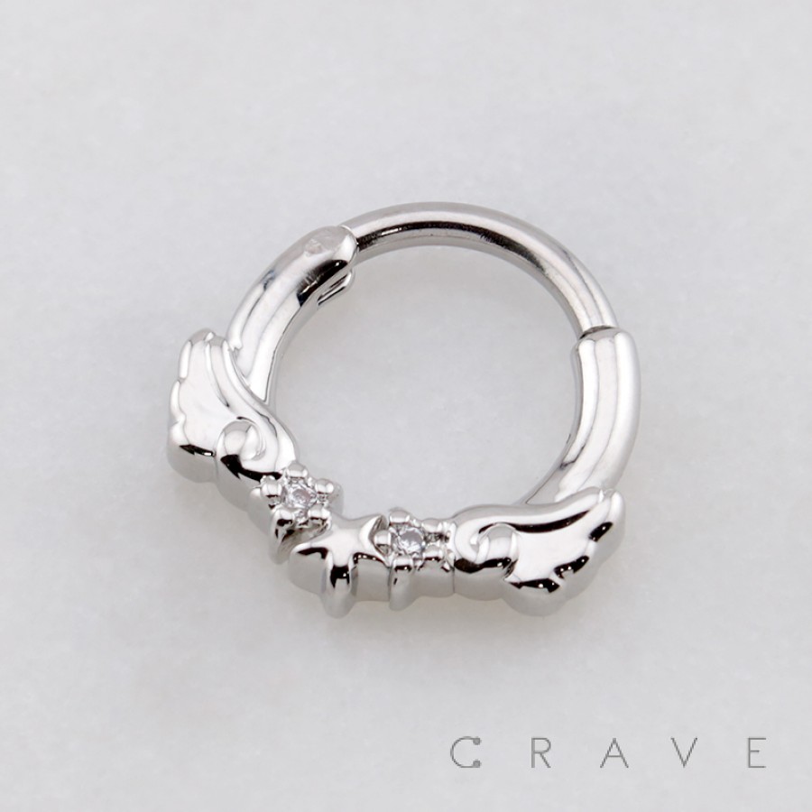 BAROQUE WINGED STAR CZ 316L SURGICAL STEEL SEPTUM HINGED SEGMENT RING