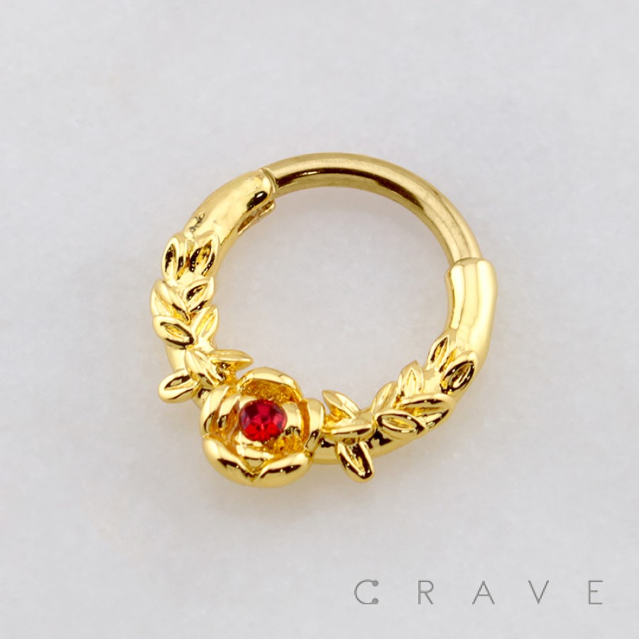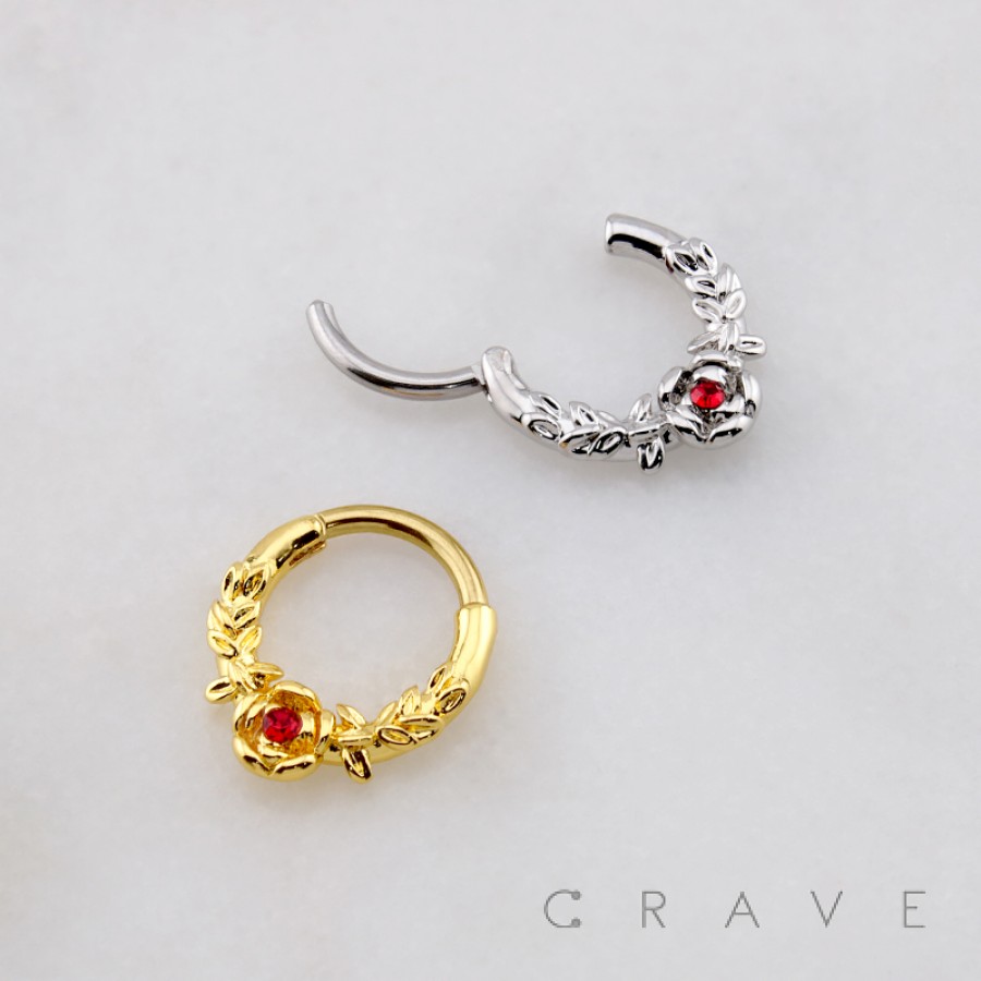 GOTHIC ROSE AND LEAF 316L SURGICAL STEEL SEPTUM HINGED SEGMENT RING