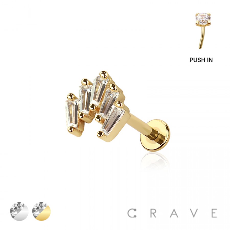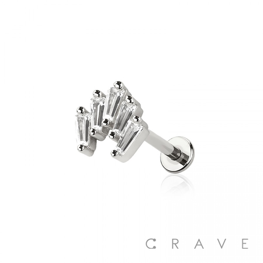 MULTI CZ BAGUETTE FAN TOP THREADLESS (PUSH IN) 316L SURGICAL STEEL LABRET SET