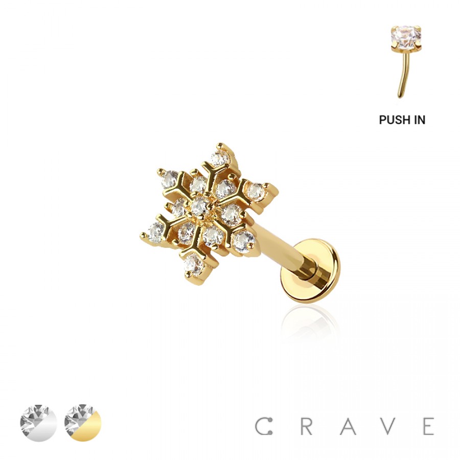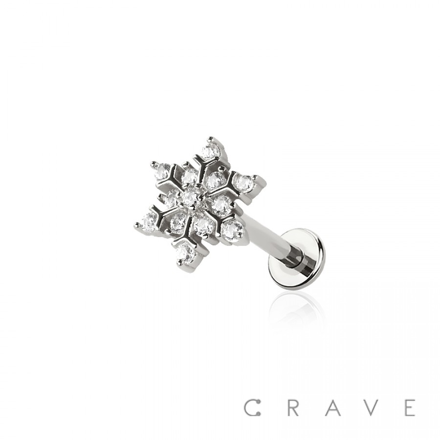 MULTI CZ SNOW FLAKE TOP THREADLESS (PUSH IN) 316L SURGICAL STEEL LABRET SET