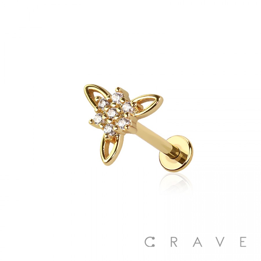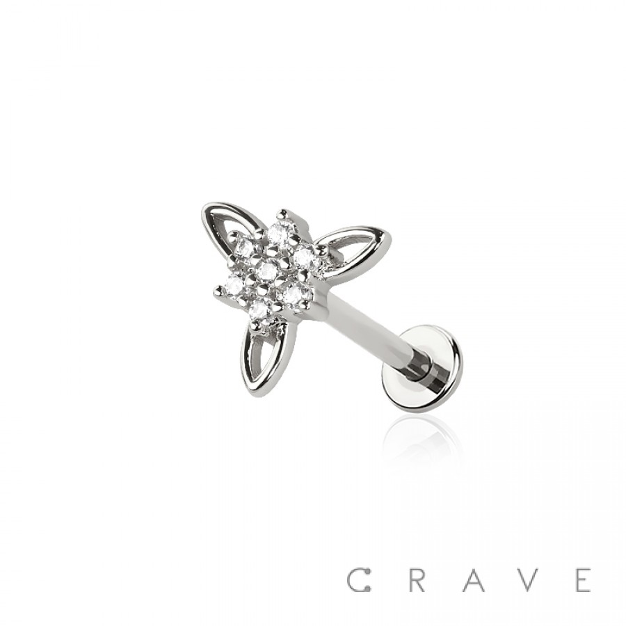 MULTI CZ TRINITY FLOWER THREADLESS (PUSH IN) 316L SURGICAL STEEL LABRET SET