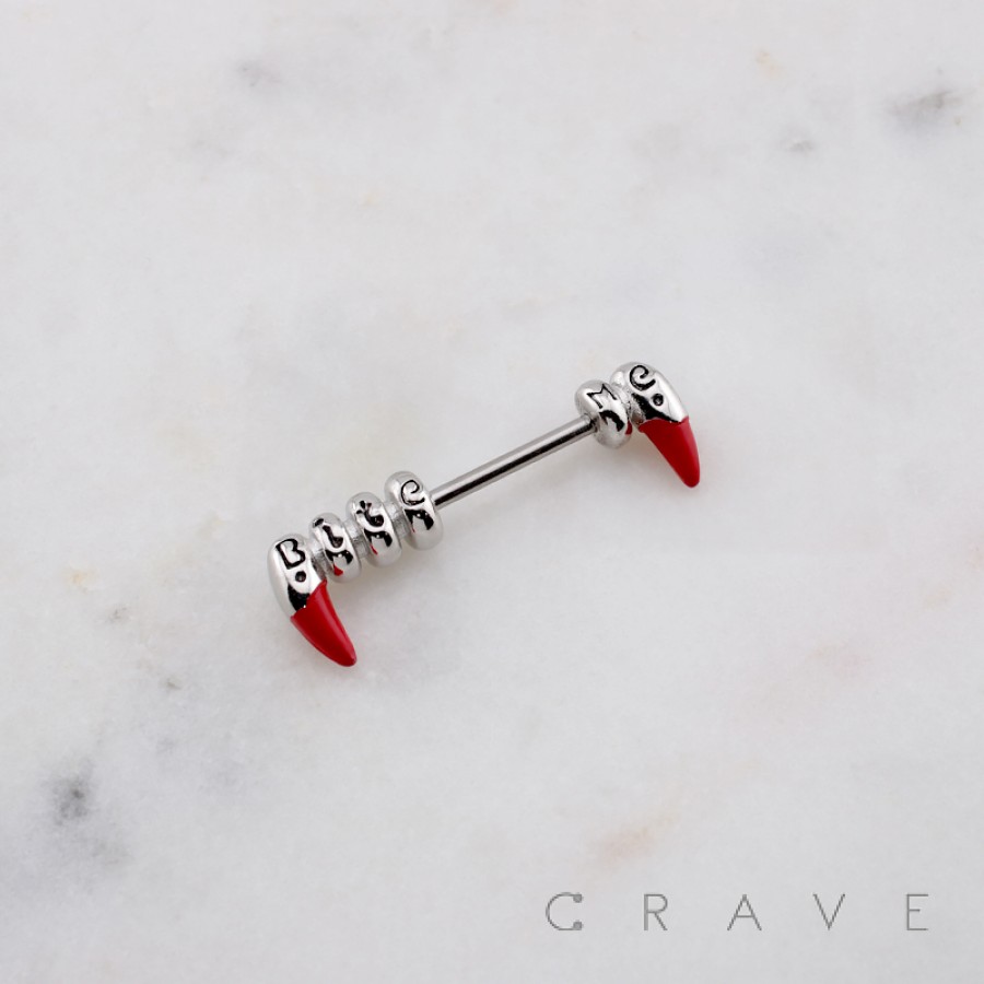 RED FANGS LOVE BITE ME 316L SURGICAL STEEL NIPPLE RING