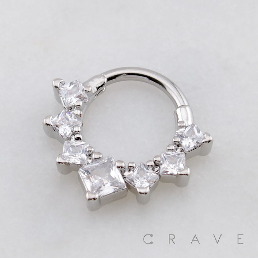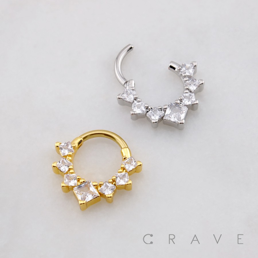 CRESCENT GRADUATED SQUARE CUT MULTI CZ 316L SURGICAL STEEL DAITH SEPTUM HINGED SEGMENT RING