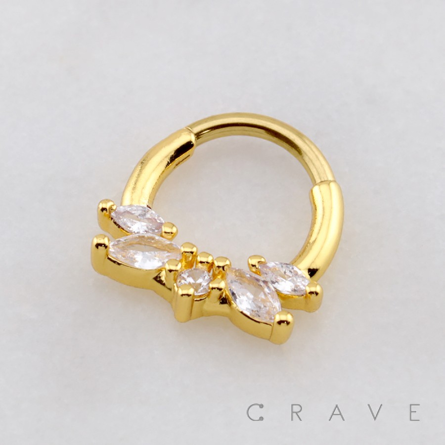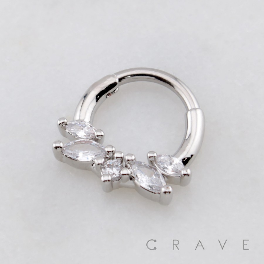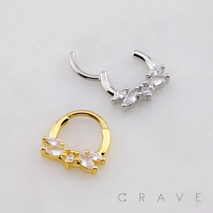 DRAGONFLY FLORAL HORSE EYE SPIKE ARRANGEMENT CZ 316L SURGICAL STEEL DAITH SEPTUM HINGED SEGMENT RING