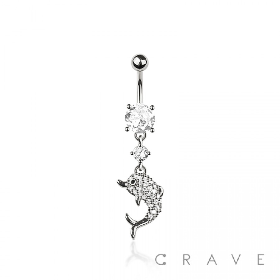 316L SURGICAL STEEL DOLPHIN DANGLE CZ BELLY BUTTON NAVEL RING