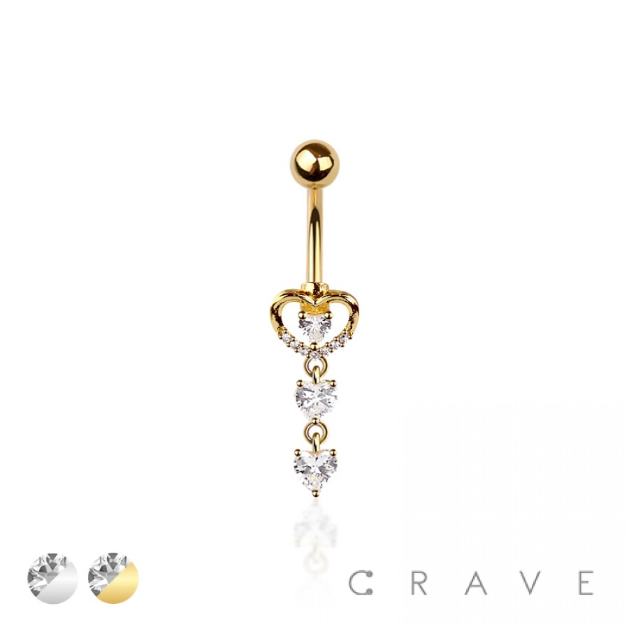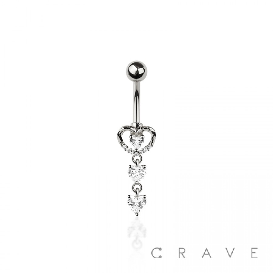 316L SURGICAL STEEL CZ HEART NON DANGLE TRIPLE HEART BELLY BUTTON NAVEL RING