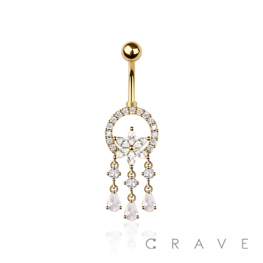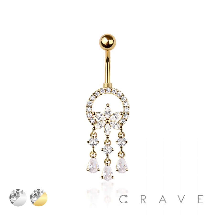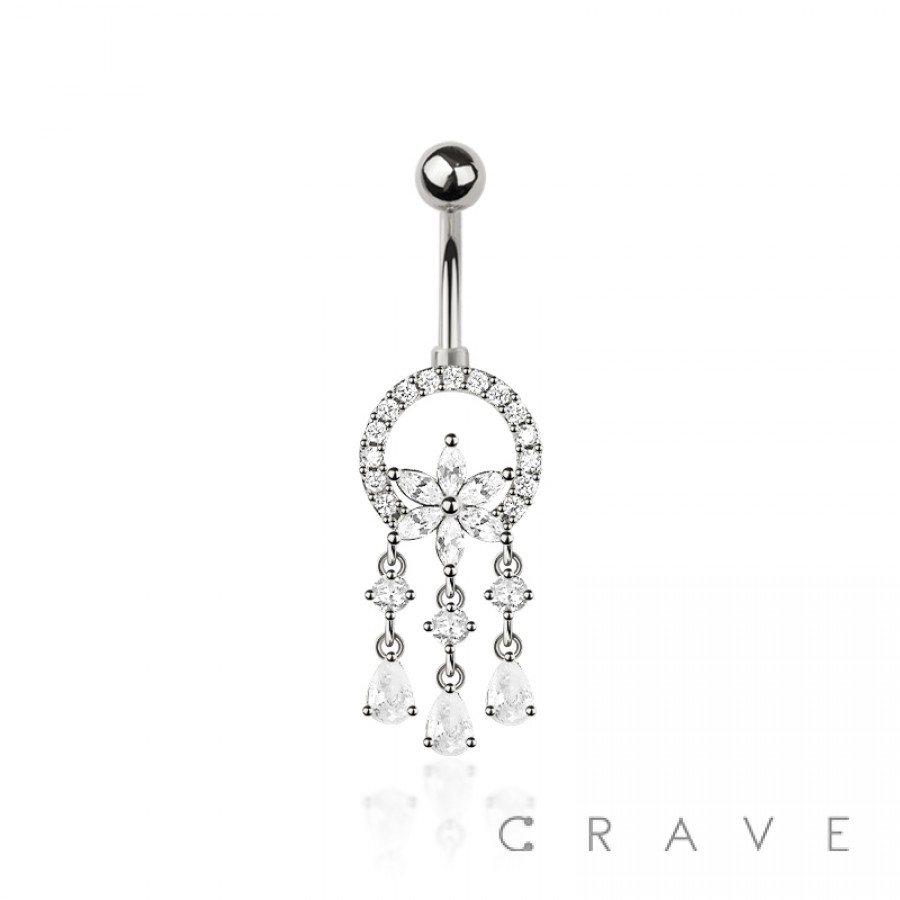 316L SURGICAL STEEL MULTI CZ DREAM CATCHER FLOWER NON DANGLE BELLY BUTTON NAVEL RING