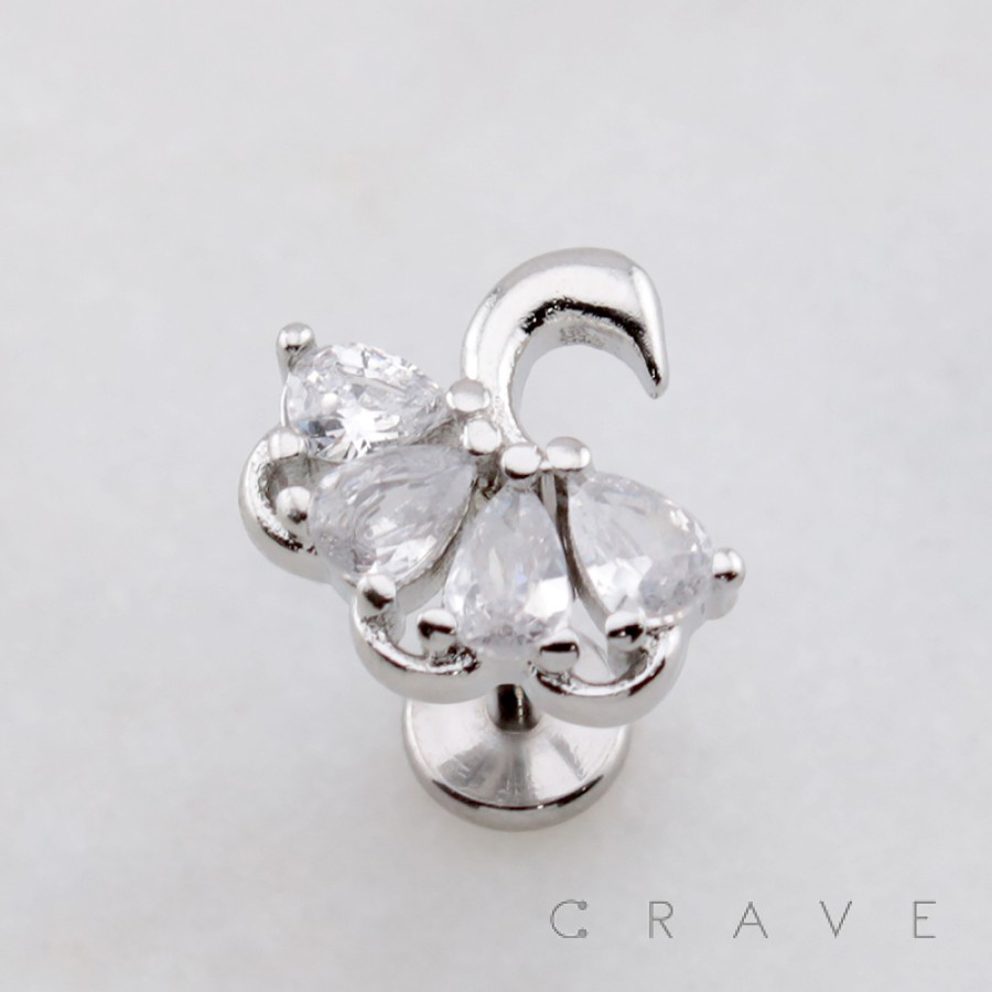 MULTI TEAR DROP CZ SWAN STUD THREADLESS (PUSH IN) 316L SURGICAL STEEL LABRET SET