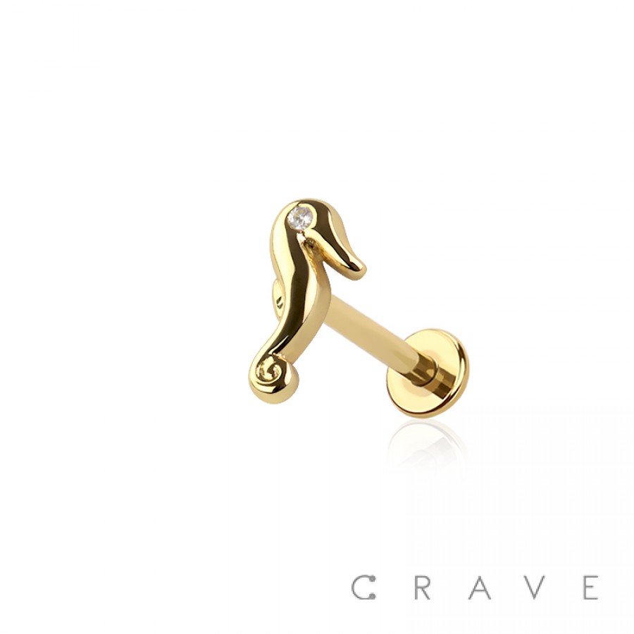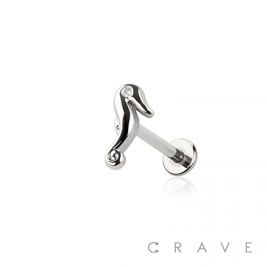 CZ SEA HORSE TOP THREADLESS (PUSH IN) 316L SURGICAL STEEL LABRET SET