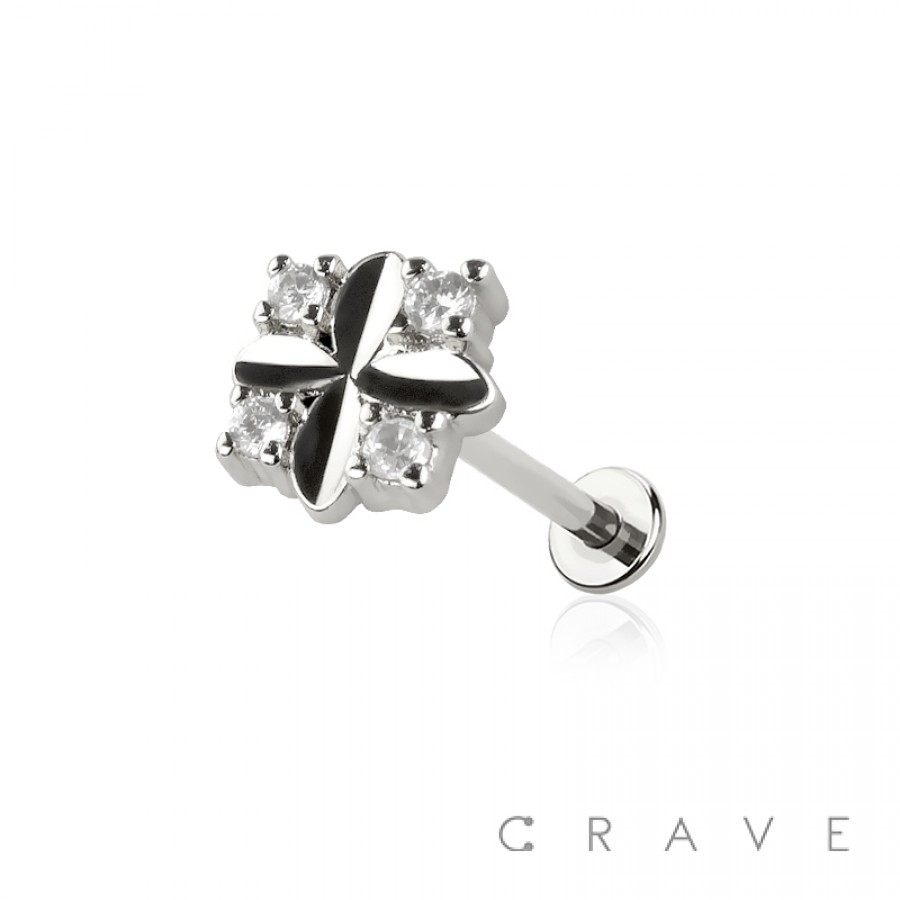 MULTI CZ SQUARE TOP THREADLESS (PUSH IN) 316L SURGICAL STEEL LABRET SET