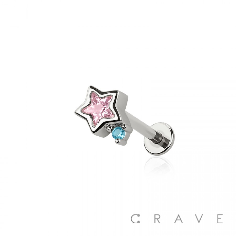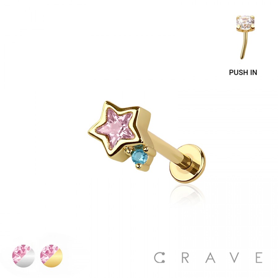 CZ TWINKLE STAR THREADLESS (PUSH IN) 316L SURGICAL STEEL LABRET SET