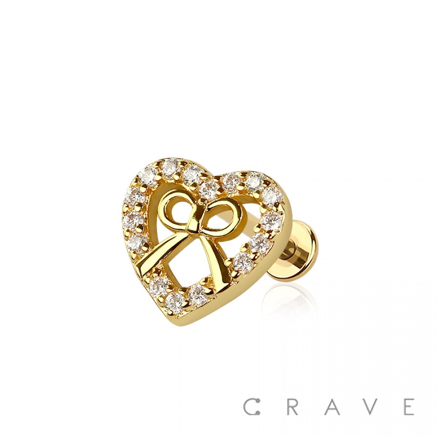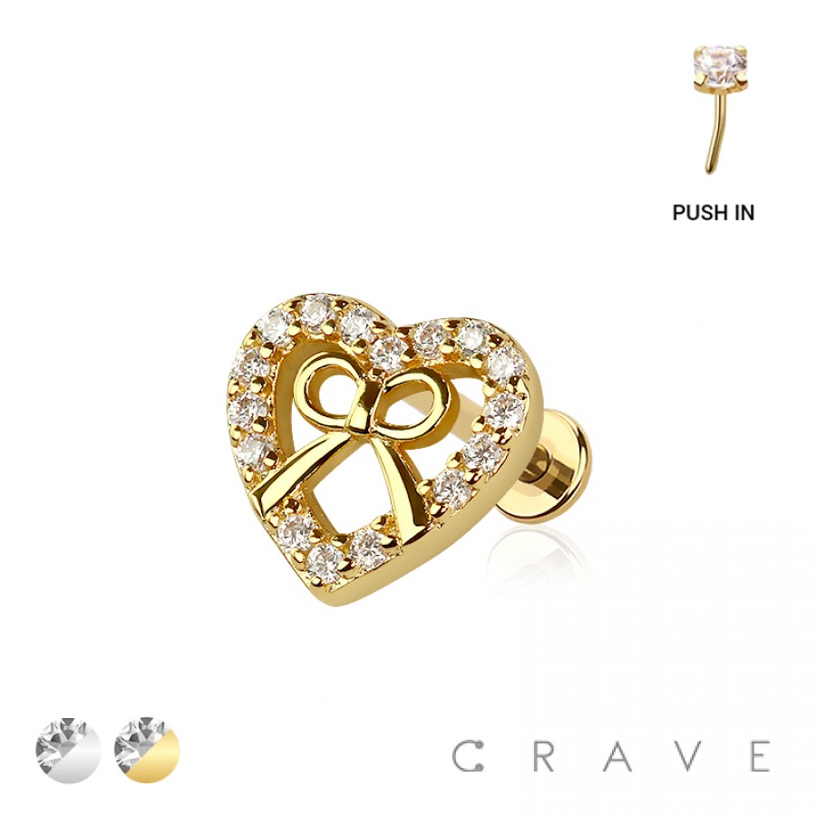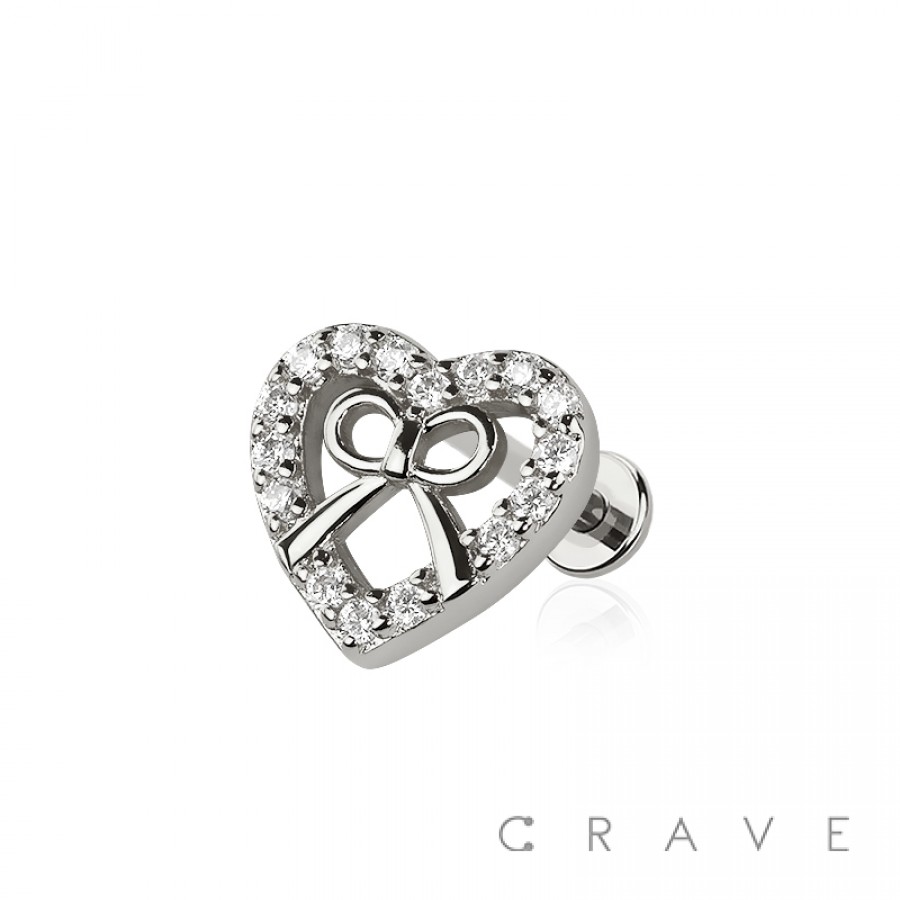 MULTI CZ HEART RIBBON THREADLESS (PUSH IN) 316L SURGICAL STEEL LABRET SET
