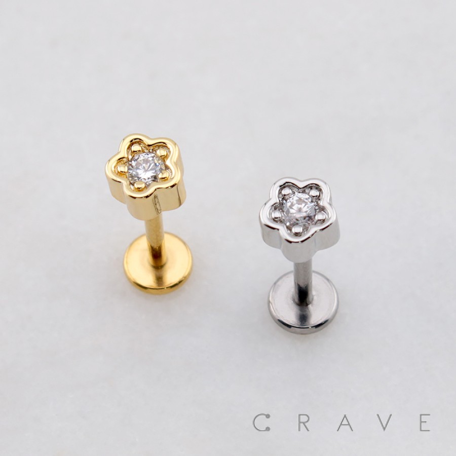 CZ STAR FLOWER THREADLESS (PUSH IN) 316L SURGICAL STEEL LABRET SET