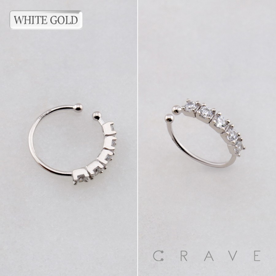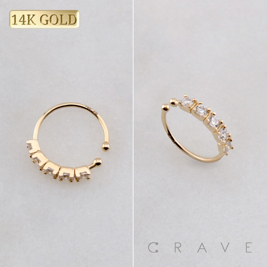14Kt Gold NOSE "O-RING" WITH 5 CRYSTAL LINE