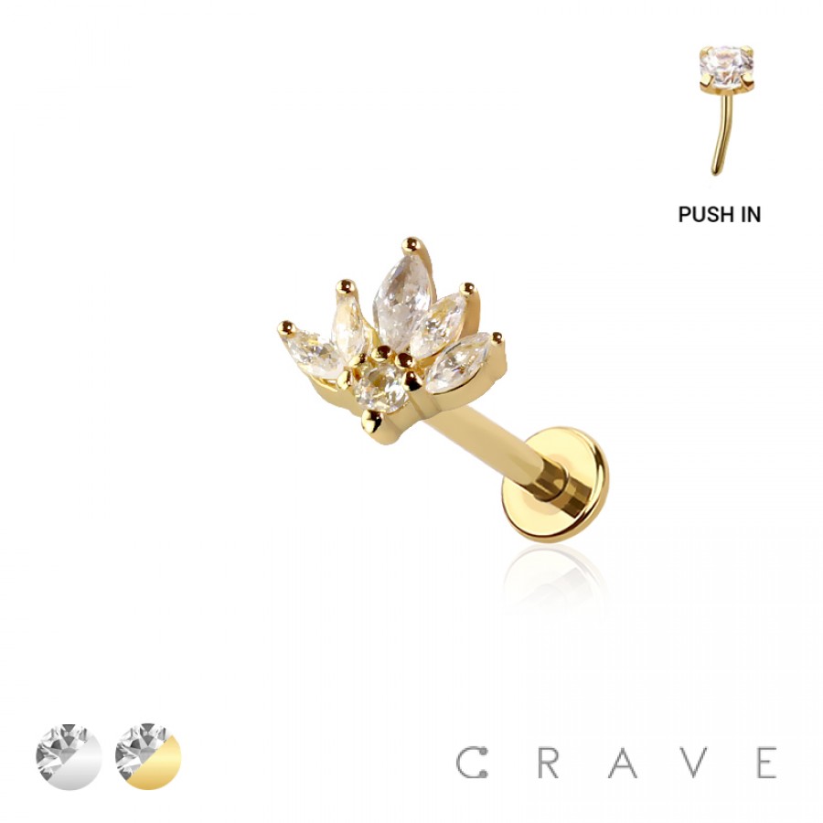 LOTUS MARQUISE TOP THREADLESS (PUSH IN) 316L SURGICAL STEEL LABRET SET
