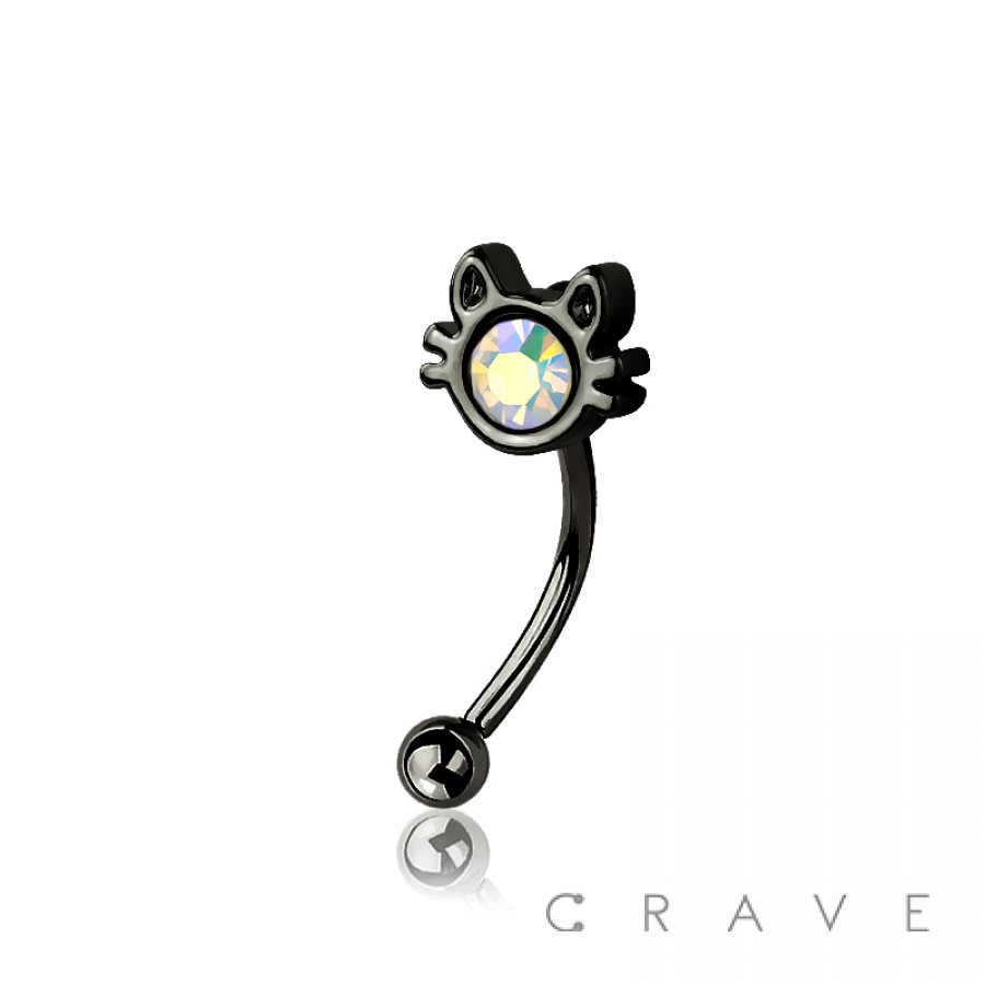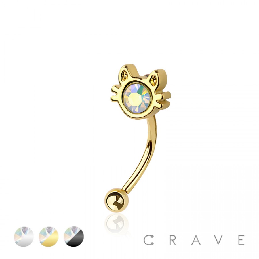 CZ KITTY CAT 316L SURGICAL STEEL CURVED BARBELL/EYEBROW